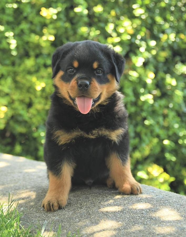 Rottweiler puppies are full of energy—curious, bold, and always ready to explore. During their first year, they require focused attention to guide that energy productively. While they settle as they mature, they remain playful and engaged into adulthood.